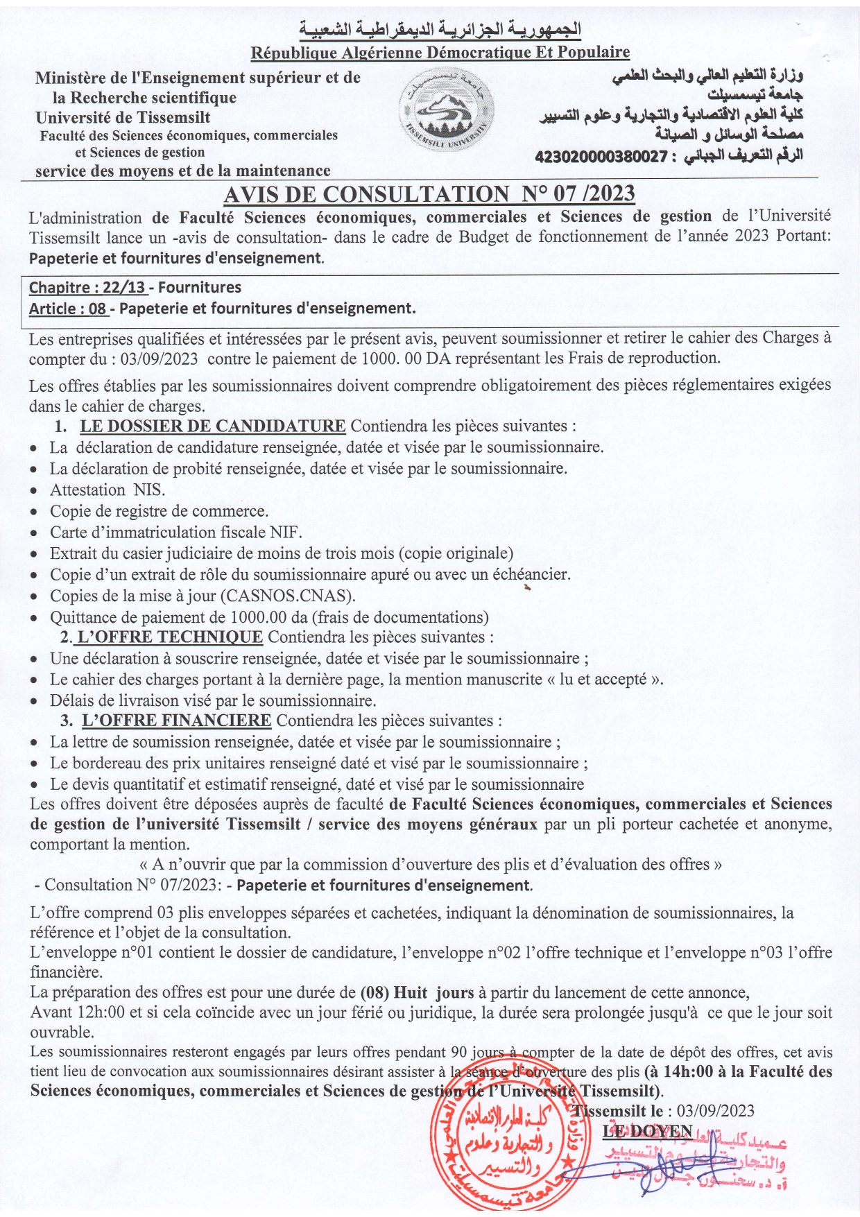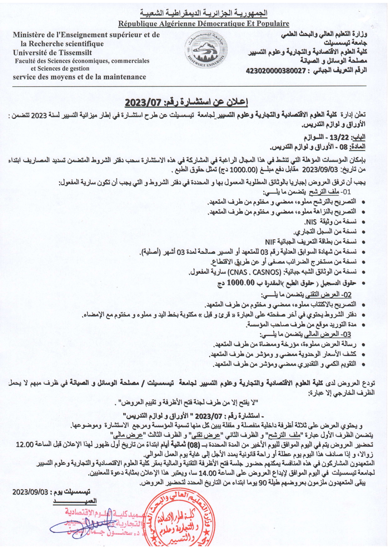 إعلان استشارة رقم 2023/07 تتضمن الأوراق ولوازم التدريس @إعلان عن مناقصاتإعلان مهم بواسطة admin faculté SECSG آخر تحديث سبتمبر 5, 2023 885 شارك إعلان استشارة رقم 2023/07 تتضمن الأوراق ولوازم التدريس- كليةالعلوم الإقتصادية والتجارية وعلوم التسيير لتحميل الملف بصيغة Pdf اضغط هنا 885 شارك FacebookTwitterGoogle+ReddItWhatsAppPinterestالبريد الإلكتروني