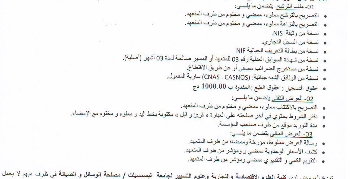 إعلان استشارة رقم 2024/22 المتضمنة مصاريف التسيير المتعلقة بالبحث العلمي والتطوير التكنولوجي- الحصة: الأثاث والعتاد والأدوات والمعدات العلمية @إعلان عن مناقصات بواسطة admin faculté SECSG آخر تحديث أكتوبر 9, 2024 323 شارك لتحميل الملف بصيغة Pdf اضغط هنا 323 شارك FacebookTwitterGoogle+ReddItWhatsAppPinterestالبريد الإلكتروني