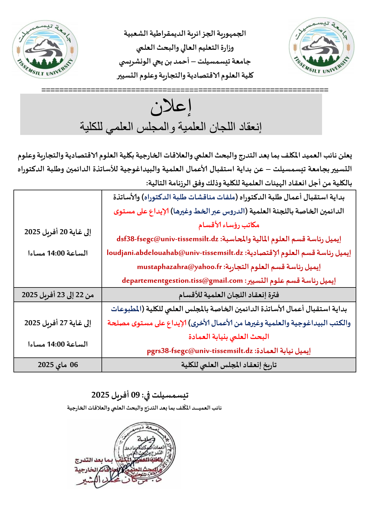 إعلان انعقاد الهيئات العلمية للكلية @المجلس العلمي بواسطة admin faculté SECSG في أبريل 9, 2025 334 شارك لتحميل الإعلان اضغط هنا 334 شارك FacebookTwitterGoogle+ReddItWhatsAppPinterestالبريد الإلكتروني